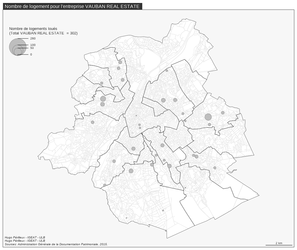 As with other initiatives to increase transparency on land ownership in cities, gaining access to reliable data in Brussels is a challenge. As Hugo puts it, “even though access to and conditions of housing are a major issue, there is no reliable way in which to determine the number and location of residences” (page 96, translated from French original). Hugo’s dataset was based on a snapshot of the property register from 2015. To focus on rented housing, he made the presumption that a property/ies was rented if the owner was different to the person living at the address, or if there were several dwellings at the same address: while using this strategy overlooked certain circumstances – for example adult children living in their parent’s homes – given the data availability it was the best option for gaining an insight into the distribution of ownership.
